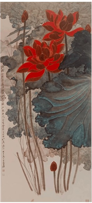 别人画荷花,是 “出淤泥而不染” 的白;他画的荷花,是粉得发亮的 “醉芙蓉”,花瓣上还沾着露水,像刚从池塘里摘下来的;别人画山水,是 “远山如黛” 的淡;他画的山水,直接把墨和颜料泼在纸上,蓝的是天,黄的是土,红的是枫叶,乱得像打翻了调色盘,但远看又是层峦叠嶂的规矩。藏家说他是 “野路子”,但咱普通人看了就觉得:“这画看着真热闹,像咱过年贴的年画,又比年画高级”—— 这就是他的本事:把 “土气的艳”,调成了 “高级的美”。