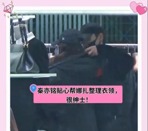 古力娜扎和秦亦铭逛街买衣服被偶遇,秦亦铭为娜扎整理衣领很贴心