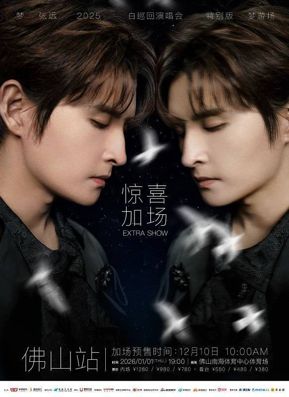 继日前公布的12月31日「梦」张远2025「白」巡回演唱会特别版引发抢票热潮后,该演唱会全程主办星奥娱乐、华声时代,联合全程承办静享未来正式宣布——应广大歌迷朋友的强烈呼声,张远将于2026年1月1日在佛山南海体育中心体育场加开「梦」张远2025「白」巡回演唱会特别版「梦游场」Extra Show。