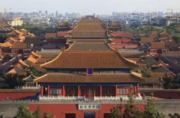 中国古建筑很少单独存在,它强调院落式布局和中轴对称。从紫禁城到四合院,都有一条明确的南北中轴线,主要建筑居中,次要建筑对称两旁。