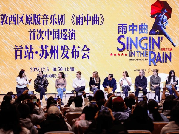 12月5日上午,伦敦西区原版音乐剧《雨中曲》中国巡演首站发布会在苏州狮山大剧院多功能厅内举行。剧目导演乔纳森·丘奇、音乐总监杰西卡·维纳、副编舞凯莉·尤因斯,以及主演格兰特·阿尔米拉尔、夏洛特·古奇等演员代表共同出席,正式宣布这部享誉全球的经典音乐剧将于12月7日至14日登陆苏州,开启全国巡演第一站。
