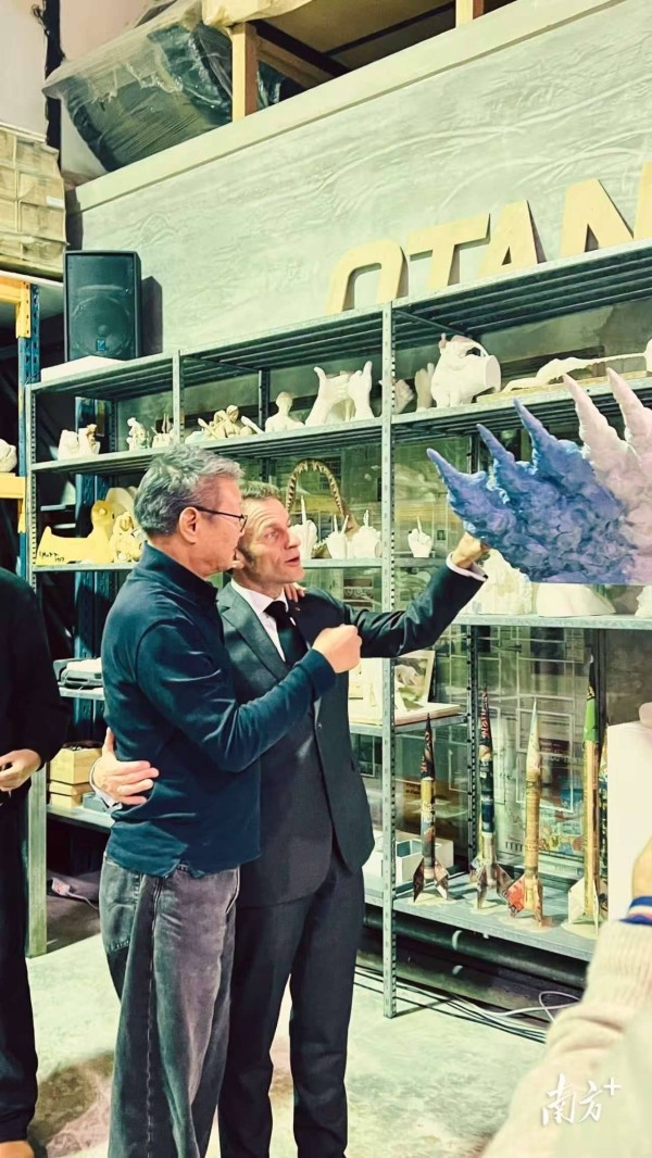马克龙做客王度和安晓彤位于巴黎的工作室。