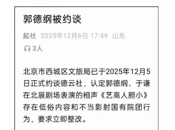 郭德纲“造谣抹黑国营院团”遭“约谈”?北京市西城区文旅局回应