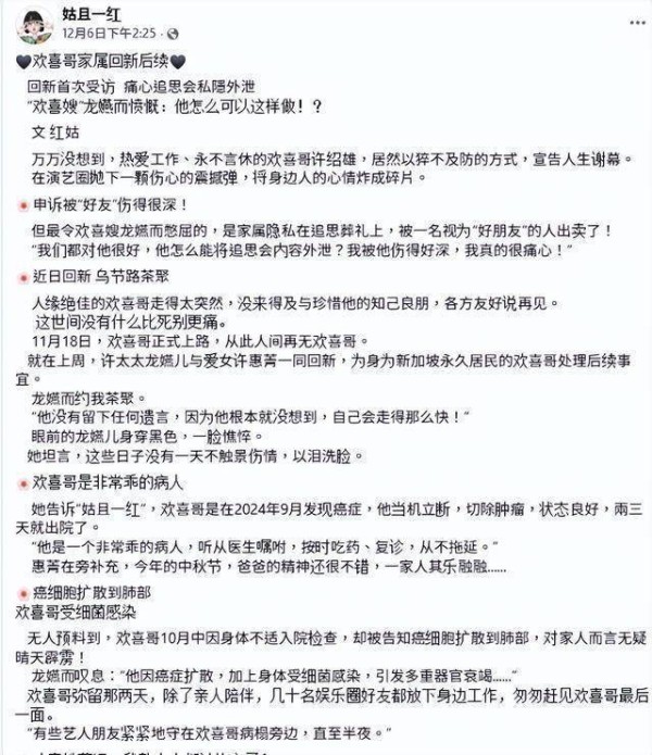 由于哥哥平时低调、不愿曝光,而追思悼文是家属与逝者之间的情感和私人表达,怎能拿这种事公开报道?她斥责对方不应在背后透露别人的隐私。