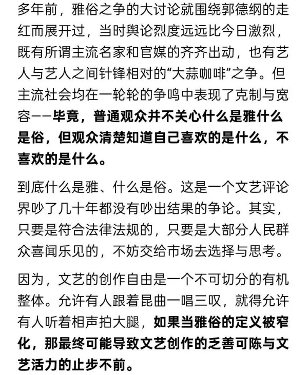官媒力挺郭德纲:演出符合法律法规,不妨交给市场去选择和思考假如你感到不快乐,不妨去听一场郭德纲的相声!