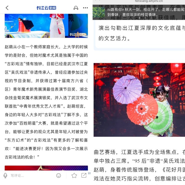 赵萌此次参赛不仅在舞台上大放异彩,更引发了媒体的高度关注。湖北广播电视台、武汉市群众艺术馆、江夏融媒、江夏区文化馆等媒体先后对她进行采访报道,深入挖掘她作为非遗传承人的故事与心得。通过媒体的传播,她的艺术理念与非遗传承实践得以影响更广泛的群体,为传统文化的当代传承注入新的活力。