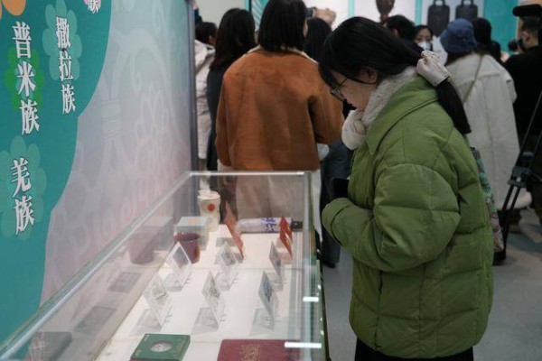 乾隆御赐的石青色金丝织锦龙褂、颜色如彩虹的土族传统“花袖衫”,还有工艺精美、寓意深远的苗族服饰……12月11日,北京站二层第八候车室内,不少旅客在等火车时惊喜地发现,车站一隅已“变身”临时展厅,俨然一座“文化驿站”,一件件精美的民族文化宫珍藏民族服饰、工艺品、乐器,以图片或实物的形式对外展出,让南来北往的旅客大饱眼福。