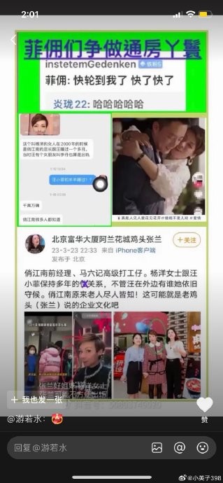 #大S[超话]#汪菜花多年的外室,兰姐直播间经常说的 洋洋,有人知道吗?原来兰姐所说的企业文化,就是男盗女娼。已婚女高管杨女士,长期出轨老板汪菜花。从俏江南时期,就给少东家汪汪做性启蒙教师,不仅是他工作上的左膀右臂,夜晚也是他的床上挚友。我今天可算明白兰姐家的家风,不愧是爱新觉罗皇室子弟,把香的臭的,都拉到她儿子房里去。妾室通房一大堆,儿子没娶正妻前,需要给他找几个通房丫鬟,给他做性启蒙? 汪菜花身边的女人都是你中有我,我中有你,无缝衔接。互为小3,各不嫌弃哈。 马小姐出身太过低微,不会嫌弃汪汪这个老通房杨杨。但我看这个洋洋似乎很看不起出身风月场所的老板娘啊?在视频里,她说自从马高音来了,就没拨开乌云见太阳过。哈哈哈哈哈哈哈哈哈哈哈,别说古代,就是现代。娼门出身也是人人嫌弃。