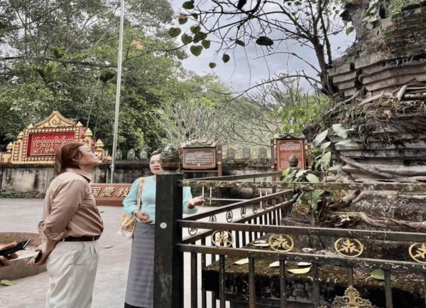 王松老师先后走访了国家级文保单位、“艺术家第二居所”核心文化地标曼春满佛寺,聆听壁画传说《释迦牟尼的故事》,端详殿内珍藏的贝叶经刻本,了解南传上座部佛教文化的传承脉络,感悟民族文化与艺术创作的融合共生。