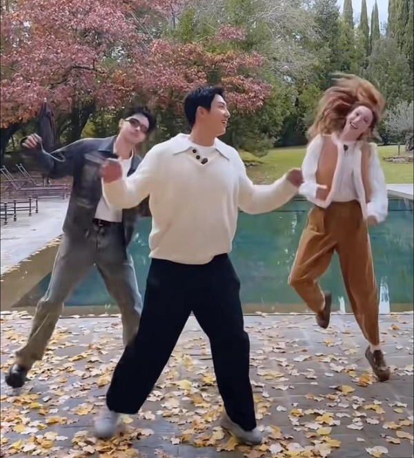 美女似乎有意和黄景瑜等人保持距离,她只身走在最前方,黄景瑜和工作人员则跟在后面,双方也没啥互动。