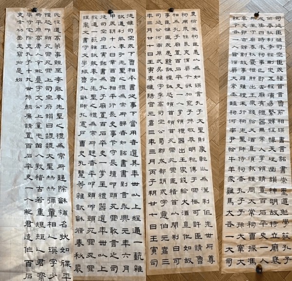 下图是她最近晒出的隶书春联作品,写得一丝不苟,字迹妍丽而工整,成为娱乐圈的一股清流。不过也有网友认为写得“过于工整”,“隶书难度极高,孙俪老师只是临帖状态,摸到一点门边而已”“写得工整只能算入门”,引发了网友争议。