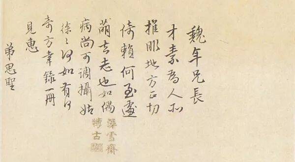 005杨思圣手札:“魏年兄长才素为人所推服,地方正切倚赖,何至遽萌去志也。如偶病,尚可调摄,姑徐徐如何?有何奇方,幸录一册见惠。弟思圣。”未书收信人姓字。