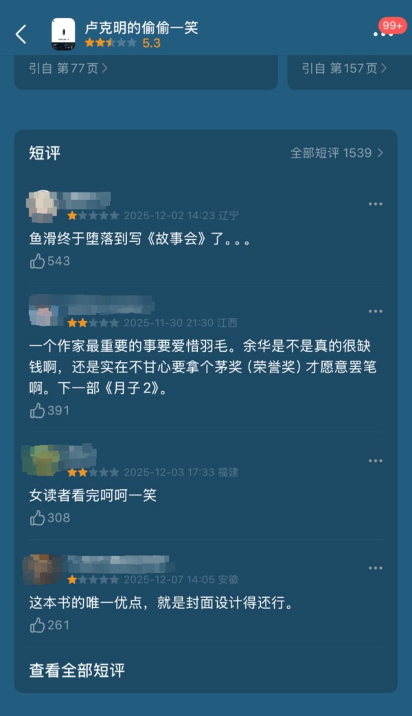 “我这次写了个喜剧,你们可以从头笑到尾。即使有眼泪,也是笑出来的眼泪。”作家余华在新作《卢克明的偷偷一笑》的腰封上写下这句预告时,或许未曾料到,读者合上书后留下的并非笑泪,而是对“油腻”文风的尖锐批评与豆瓣仅5.3分的尴尬评分。