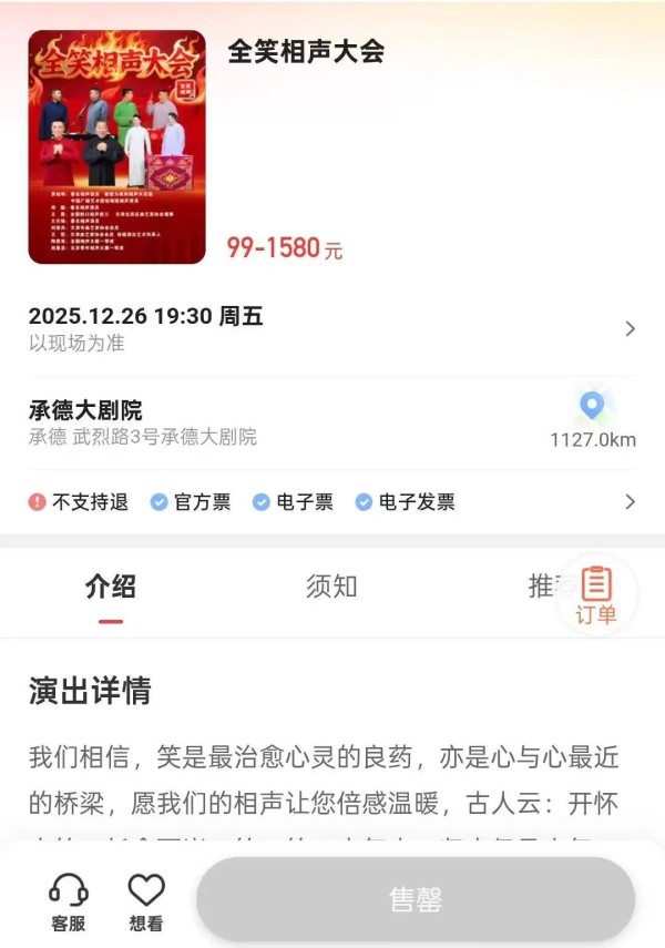 同样的演员,同样的演出,前一天只卖出21张门票,一晚上过后,上千张门票全部售罄,难道是承德老百姓突然爱上了主流相声作品?