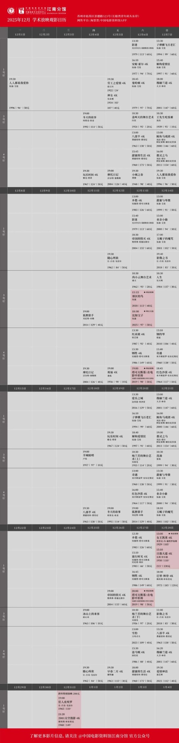 岁序更替,华章日新,2026年将至,江南分馆的1月放映昨日已开票。夏衍作品回顾、伍迪·艾伦作品精选、罗伯特·罗西里尼与埃里克·侯麦汇聚而成的大师回顾、丹麦影史经典等精彩专题一并呈现,共同开启新年的光影篇章。