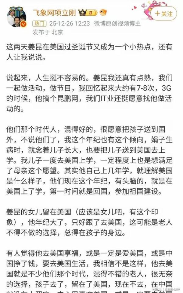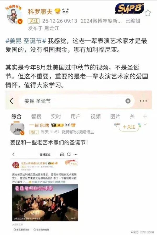 发布者还专门标注了“圣诞节前夕”,让人觉得姜昆似乎是特意跑到美国去过圣诞节。