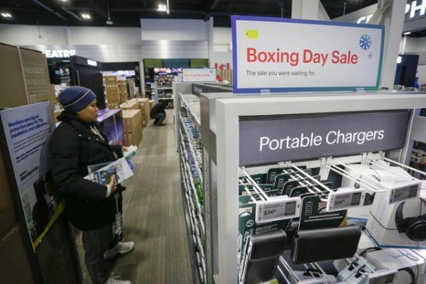 ↑12月26日,顾客在 加拿大温哥华一家电子产品商店内选购商品。新华社发(梁森摄)