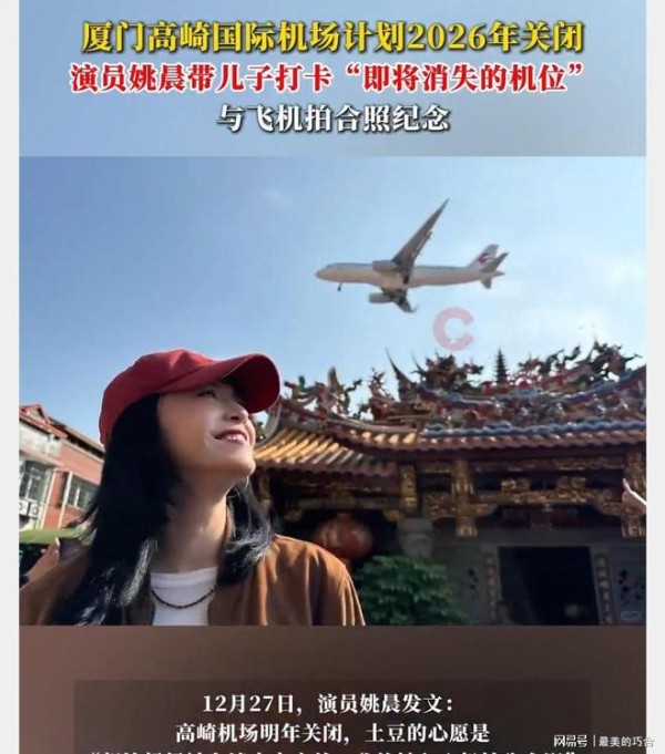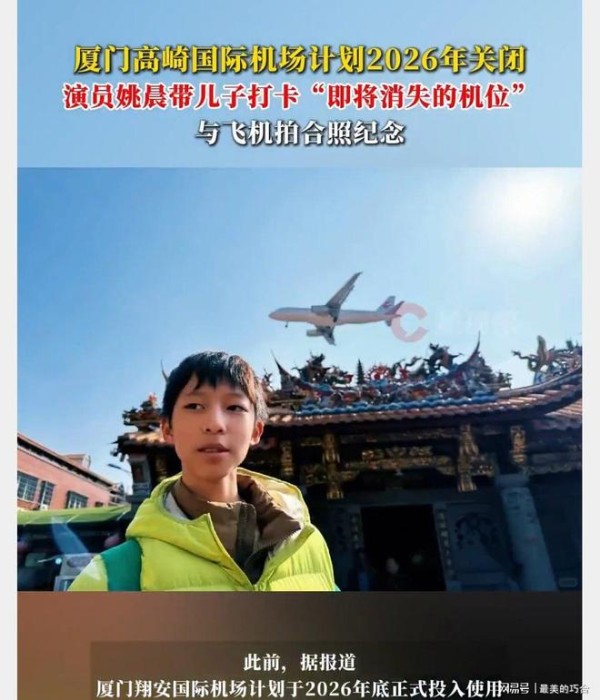 一张红墙与机翼同框的合影,为何让全网集体破防?近日姚晨带儿子打卡厦门清水宫的动态,让“高崎机场即将关闭”话题刷屏,这场温柔的告别,藏着远比乡愁更复杂的故事。