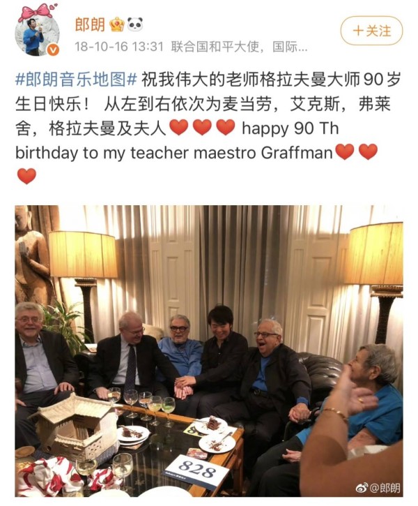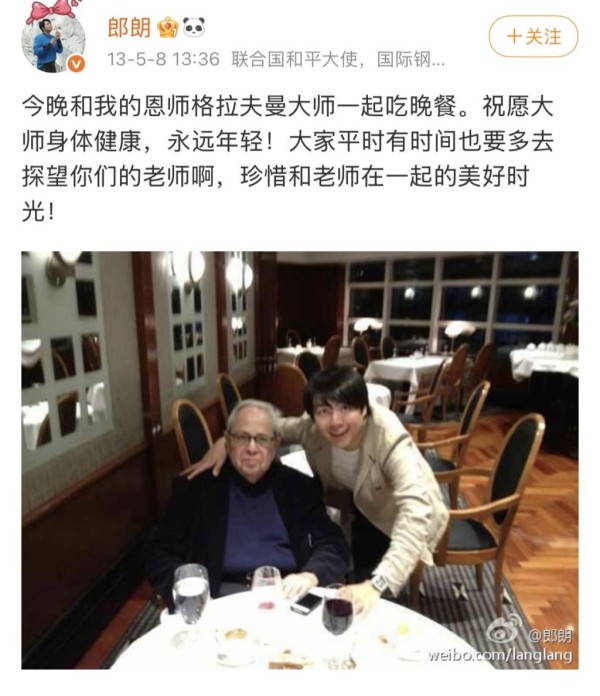 在微博上,郎朗记录了自己和格拉夫曼交集的点滴,每逢格拉夫曼生日或教师节,他还会给老师送上祝福,并希望他身体健康、永远年轻。