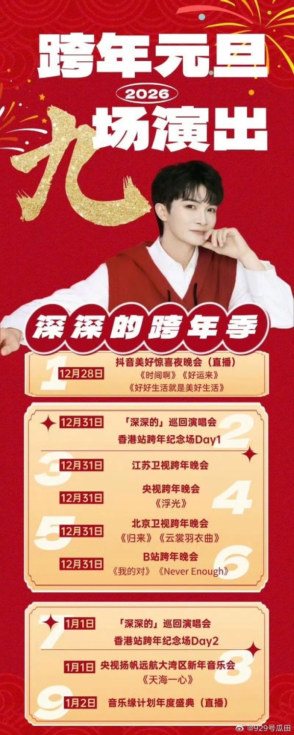 #周深跨年有9个舞台# 跨年夜想看周深?选择困难症都要犯了!九个舞台齐发,从深情吟唱到热闹祝福,全方位满足你的耳朵。这哪里是追晚会,分明是在欣赏一场周深个人的“跨年巡回声宴”,粉丝的遥控器今晚注定要忙不过来了。