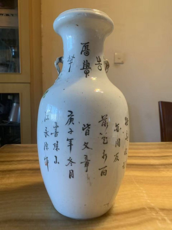 江永源是清末民初景德镇“珠山八友”同期的文人画师,擅长将文人画融入瓷绘,存世作品多藏于博物馆,民间祖传的完整器尤为珍稀——此瓶的款识、笔墨、工艺,恰是其艺术风格的标准样本。