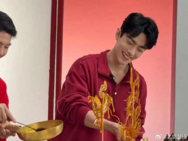 肖战红衣造型亮相北京卫视,舞龙糖画迎新春