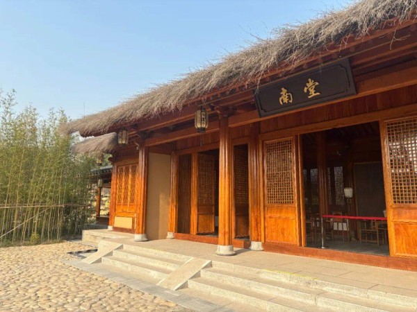 那天气温回暖。上午的高铁,中午餐后稍事休息,往附近的黄酒小镇一游。黄酒小镇是新取的名称,原因是此地黄酒生产特为发达。当地叫东浦,旧时镇上酒坊林立,现在也酒旗招展,河岸有堆叠成排的酒坛、酒瓮、酒缸。会喝酒的人一定要来这里,有一种激动人心的感觉。当年这里也是放翁常来的地方,写有《游山西村》《秋赛》《行过西山至柳姑庙晚归》,传诵古今的名句“山重水复疑无路,柳暗花明又一村”,据说正是写在这里。他的诗中保留了诸如“西村”“湖桑埭”“柳姑庙”“道士庄”等古地名。湖桑埭现在叫“壶觞村”,写法变了,但读音未变,是古名称的音转现象。为什么叫“西村”?因为放翁家住鉴湖三山,村子在家的西头。他常常划一只小艇就过来了。也因此,黄酒小镇的东头,新建了一个纯木结构名为“放翁阁”的建筑群。此阁虽然也并不高,但未免过于庄重、气派、挺拔,跟放翁乡村生活中放达闲适的造型,肯定不像。