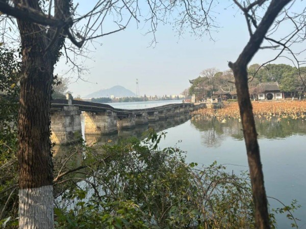 站在桥头向四周望去,虽然冬天的红蓼已经枯萎,但“湖山清丽说不尽”的意境,仿佛就在眼前。放翁《思故山》这首诗,其看桥的角度确实是从水面而来的,因为你看“一弯画桥出林薄,两岸红蓼连菰蒲”的“出”字、“连”字,就有摇着小舟而来的一种动态感、连续感,桥也活了,水生植物也活了,这正是AI写不出来的具身感受。九百年时光悠悠,我们为这样与古人的邂逅而喜悦,更为我们与诗人走过、看过同款的古桥而歆幸。恍惚间好像看到陆游“船头一束书,船后一壶酒”的小船,从暮色中缓缓归来了。