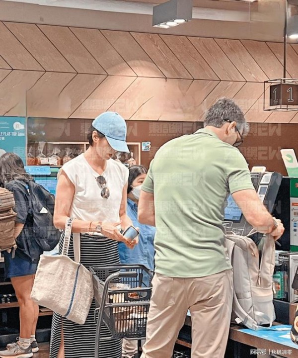 两人买了满满一堆食材后,在自助收银机前亲自一件件扫码。令人意外的是,面对这么多货品,他们并没有购买一元的塑料购物袋,而是硬是把所有食材塞进背包里,既节俭又环保。离开时,梁咏琪自然地挽着丈夫的手臂,一边聊天一边走向停车场,甜蜜又真实。