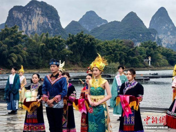 1月1日上午,“新华杯”第21届中国-东盟礼仪大赛中国总决赛在广西桂林市阳朔县印象刘三姐山水实景舞台举行。大赛由新华集团等单位主办,以“礼赞漓江·渔火情深”为主题,分为“民族华章·礼脉同源”“青春绽放·礼行天下”“华服共赏·东盟同辉”三大篇章。选手通过民族服饰、青春礼仪及东盟各国传统服装展示,呈现了一场融汇多元文化的礼仪盛宴。活动彰显了中国与东盟以礼为桥、文明互鉴的友好情谊,展现传统文化在当代的传承与创新。图为总决赛启幕仪式。邓竣缤 摄