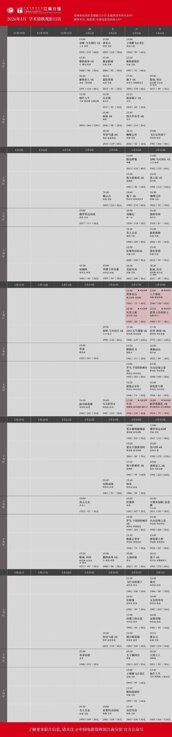 苏州今日放映|2026.1.3 周六