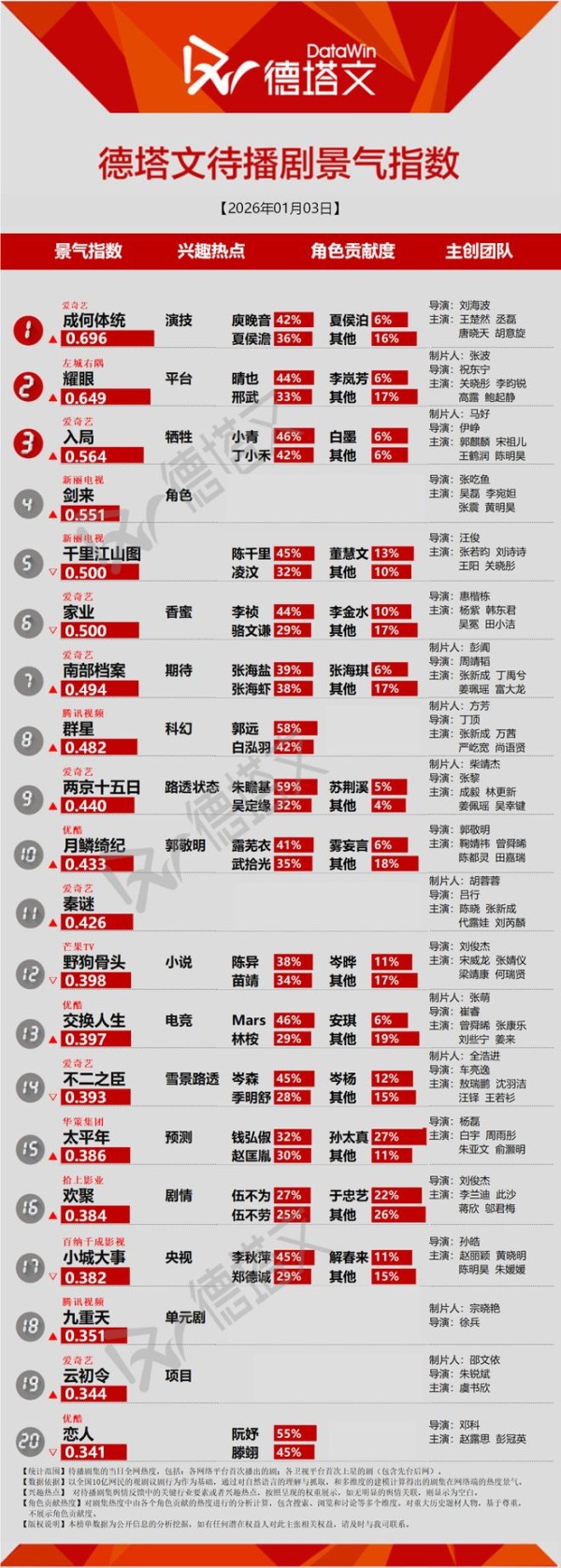 今日市场:市场头部剧集优势稳固,腰部竞争趋紧