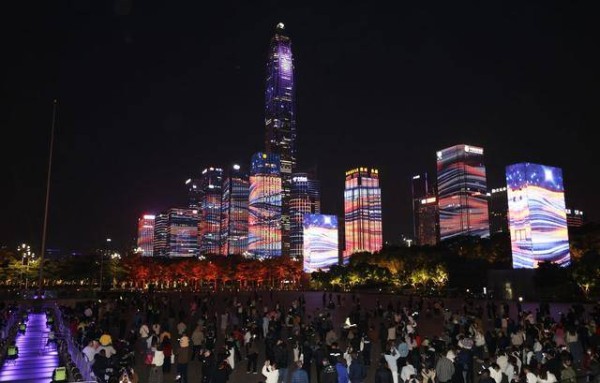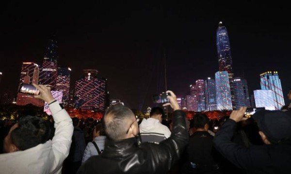 1月3日,以《辉煌新时代》为主题的灯光秀在深圳市民中心举行,吸引大批市民在元旦假期最后一天前去观看。据了解,该灯光秀共分为四个篇章,表演时长为14分38秒。