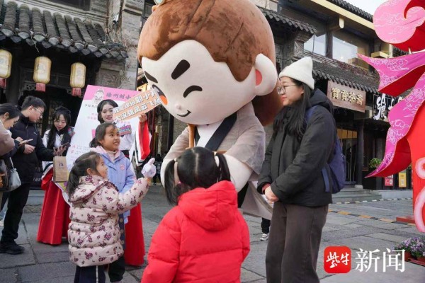 元旦假期里,徐州街头游人如织。各种文创IP纷纷走上街头,和游客们亲密互动。其中,去年11月,在上海“中国在地吉祥物大赛暨在地文创IP萌趣赛”上,拿下“最具文化特色力奖”的徐州本土文创IP“刘小邦”,成为了各个人流密集区里最靓的仔,游客们争相与他互动合影。