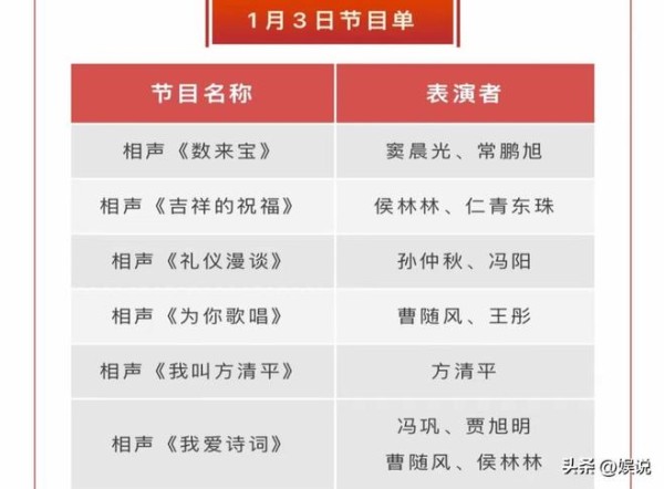 这两场演出一共有18位艺人参加,1月3日的演出是13位(两场演出有重复的演员)!