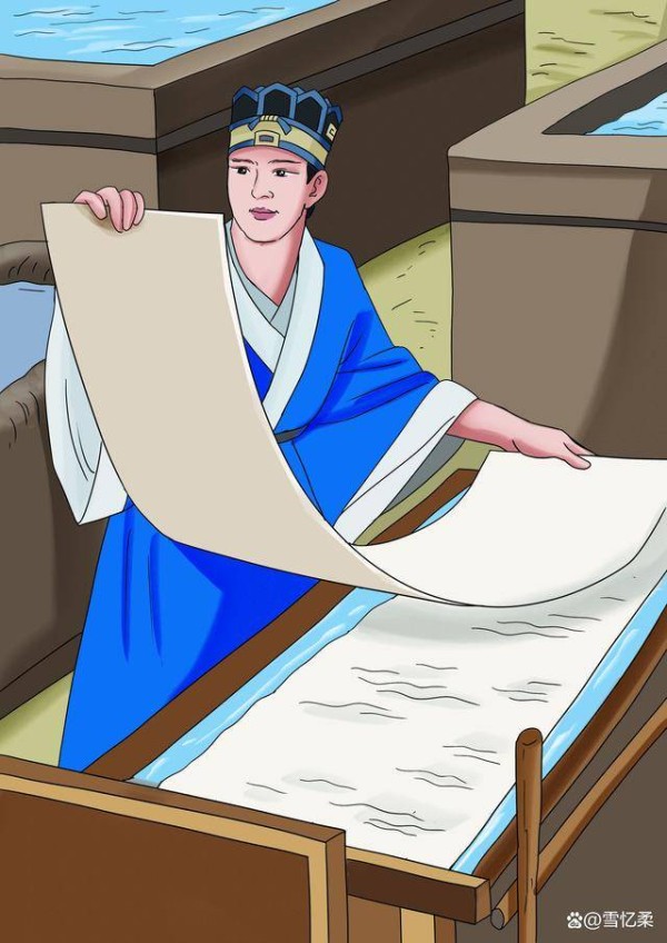 在那个时代,文书多是刻在竹简上的,竹简非常厚重,每当皇帝批阅政务时,需要用车将竹简搬运,极为不便。虽然也有使用轻便的缣帛来书写,但缣帛价格昂贵,蔡伦决定寻求一种更加便宜和便捷的书写材料。 蔡伦总结了前人的经验,开始尝试利用树皮、麻头、破布和破渔网等原材料进行造纸实验。经过不断试验,最终在公元105年,蔡伦成功地发明了一种既轻便又经济的纸,并将其献给了汉和帝。和帝对此大发雷霆,认为此举能够极大地推动政务的效率,便立即下令推广。蔡伦因此获得了封号龙亭侯,并赐予三百户封地。