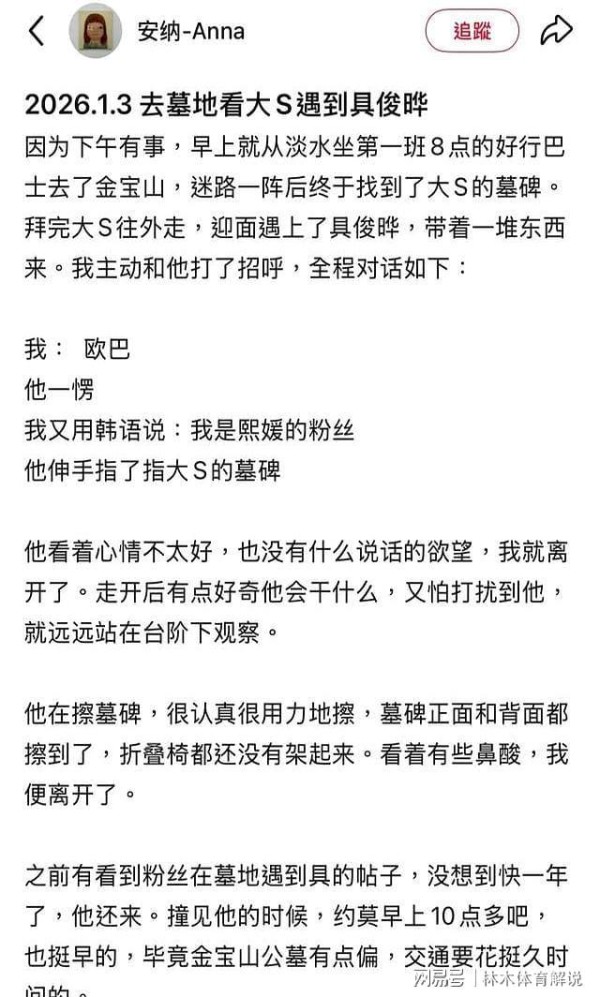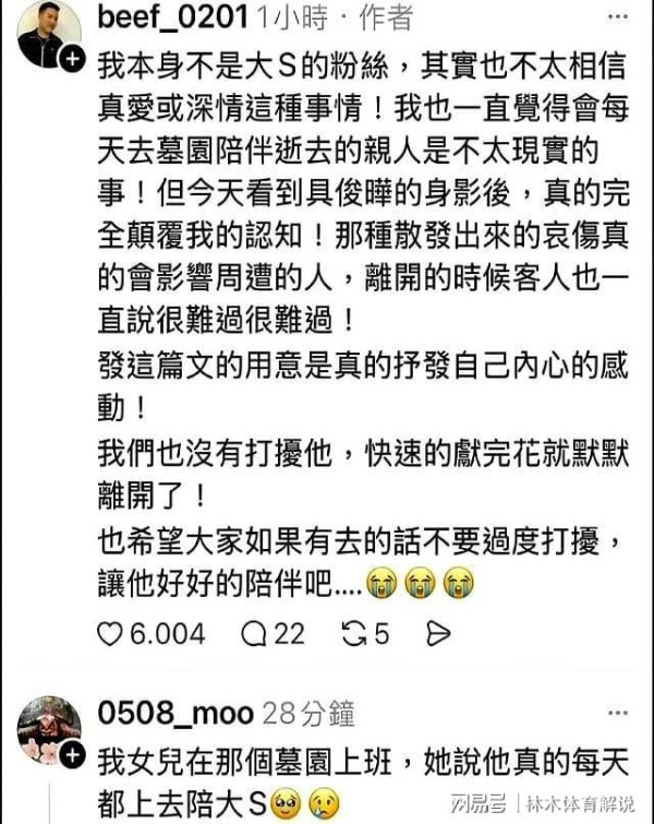 网友在大S墓地偶遇具俊晔,墓园工作人员:他每天都会去