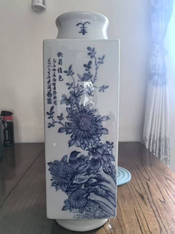 王步青花“铁线描”与四方器型、四季花鸟主题结合,不仅是工艺的炫示,更是东方哲学与文人诗意的立体化呈现。此瓶已超脱一件瓷器,而是一部用钴蓝水墨在如玉白坯上写就的立体《诗经》,其文化底蕴深厚如海。