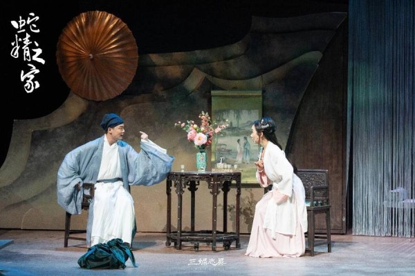 温方伊编剧的《慧眼》和《蛇精之家》则不强求情节的整一性和全方位的观点输出,这两个短剧最有中国传统戏曲折子戏的趣味。《慧眼》是苦守寒窑18年、终于被薛平贵封为皇后的王宝钏夜访薛平贵18年来的“事实配偶”代战公主,《蛇精之家》想象许仙去金山寺之前就忍不住和白娘子摊牌。两个短剧的“前因”没有在舞台上正面出现,“后果”也是开放性的,重要的是此时此刻斗室里的风暴。