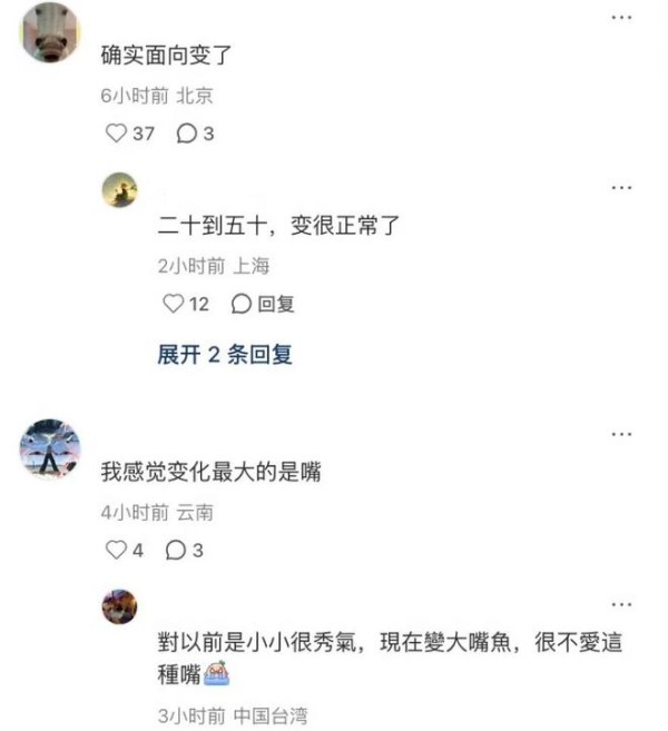 还有网友表示,林志玲变化最大的地方就是嘴巴,以前感觉小小的很秀气,现在却变成“大嘴鱼”了。