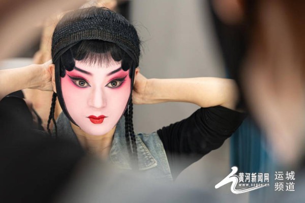 蒲剧演员杜丽娜正在整理妆造。(资料图)