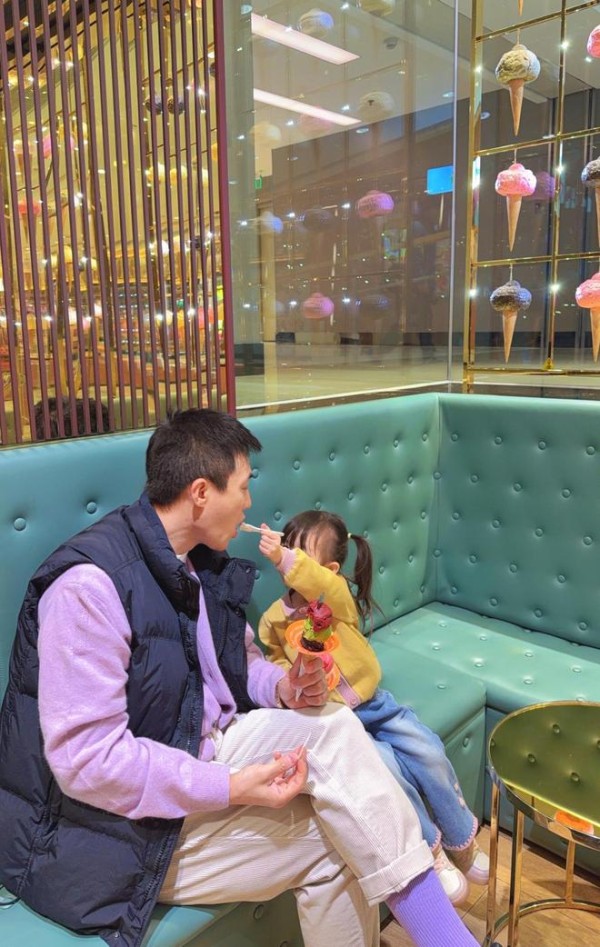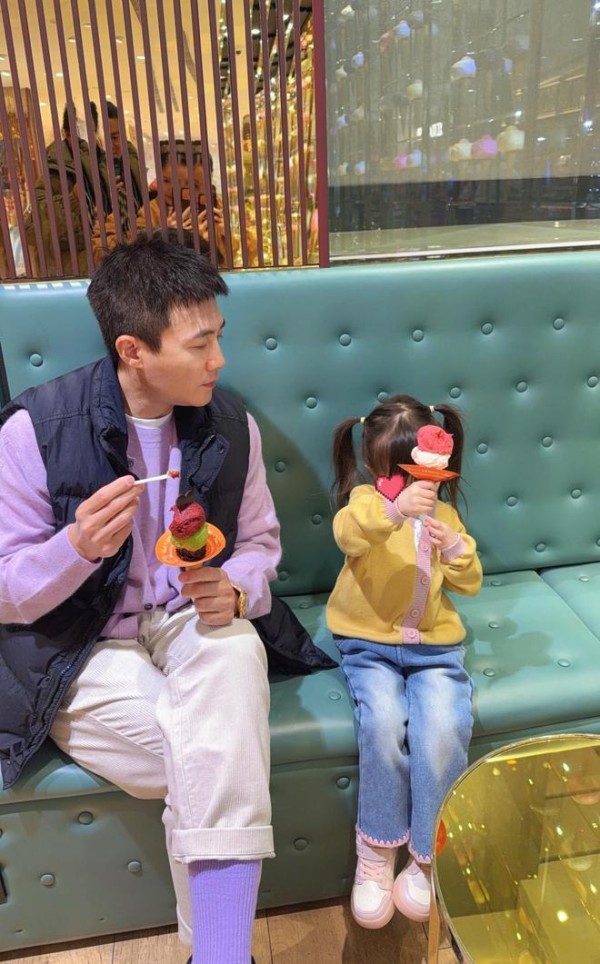 从杜淳公开的照片可见,他带着女儿小蛋饺到某商场闲逛,两人逛累了,便坐在沙发上休息,期间杜淳还给女儿买了彩色冰激凌,父女俩人手一个。