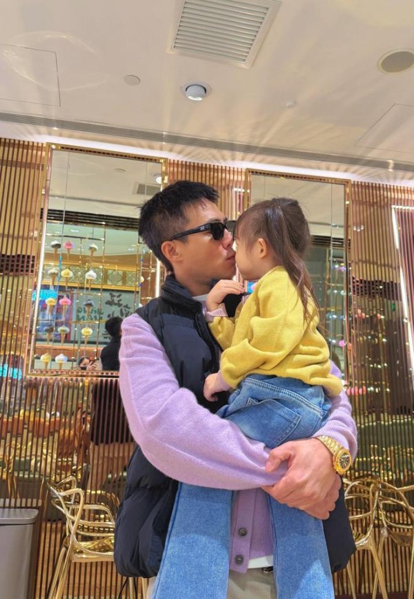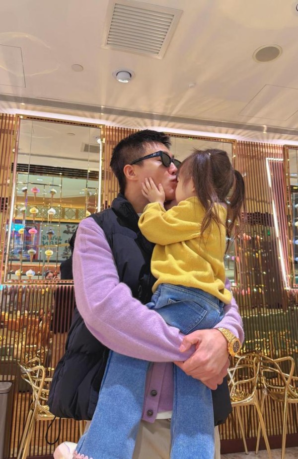父女俩吃完冰激凌后,杜淳便把女儿抱在怀中,小蛋饺与父亲杜淳紧贴着彼此的脸,她的脸上露出笑意,侧脸很是可爱。