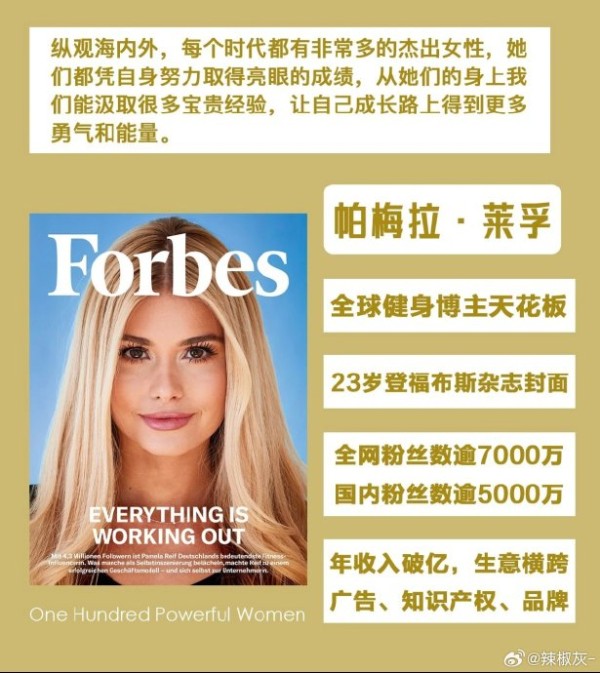 #帕梅拉胖了6公斤#号称所有女人的训练目标的帕梅拉都胖了6斤 看来大家不需要焦虑了 冬天就是该多吃点养的白白胖胖的 帕梅拉真的很厉害 15岁开始健身 17岁成为健身网红 23岁登上福布斯富豪榜 十年如一日的坚持训练 真的太自律了