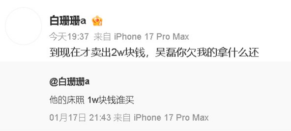 1月18日,一名女网友“@白珊珊a”自称有艺人床照,并喊话吴磊:“吴磊你欠我的拿什么还。”引发网友热议。对此,吴磊工作室发布严正声明回应:“该网络用户所发布关于吴磊先生的言论为毫无事实依据的谣言!对于一切诋毁与诽谤,我们都将追究到底,绝不姑息”。
