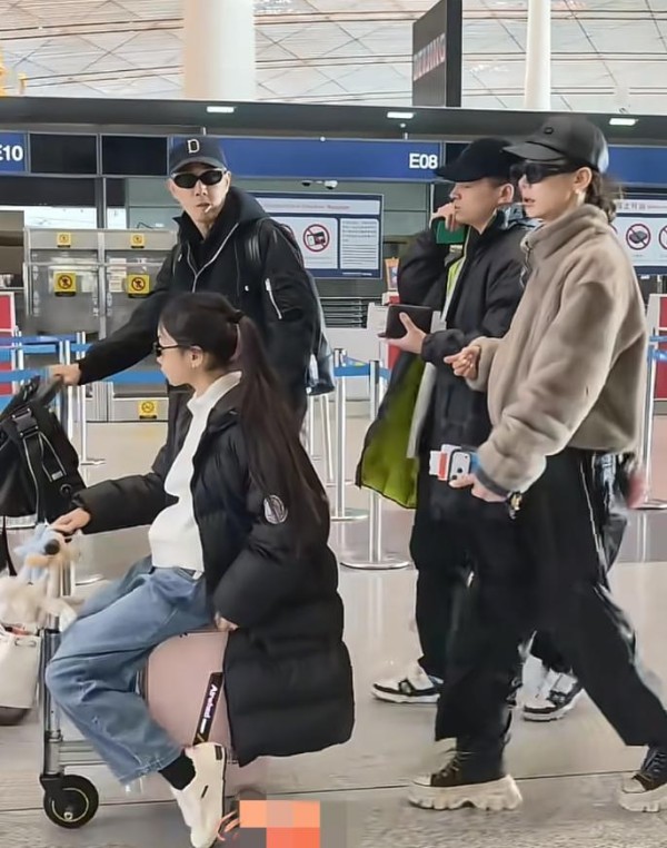 10岁的女儿Lucky也是长大了,头发乌黑亮丽,让人羡慕,坐在行李箱上还能骑个小车太舒适了,之后在候机的时候,和妈妈一人一部手机的玩,戴着墨镜也是很酷炫了,3岁的seven被拍到正脸肉嘟嘟的很是可爱。