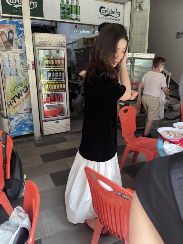 当天中午,朱珠和家人到一家大排档吃新加坡本地美食,她的穿衣打扮休闲又不失时尚,下半身穿了一条白色裙子,脚踩凉鞋,一头微卷长发随性披肩,整个人看起来好松弛,文艺范十足!