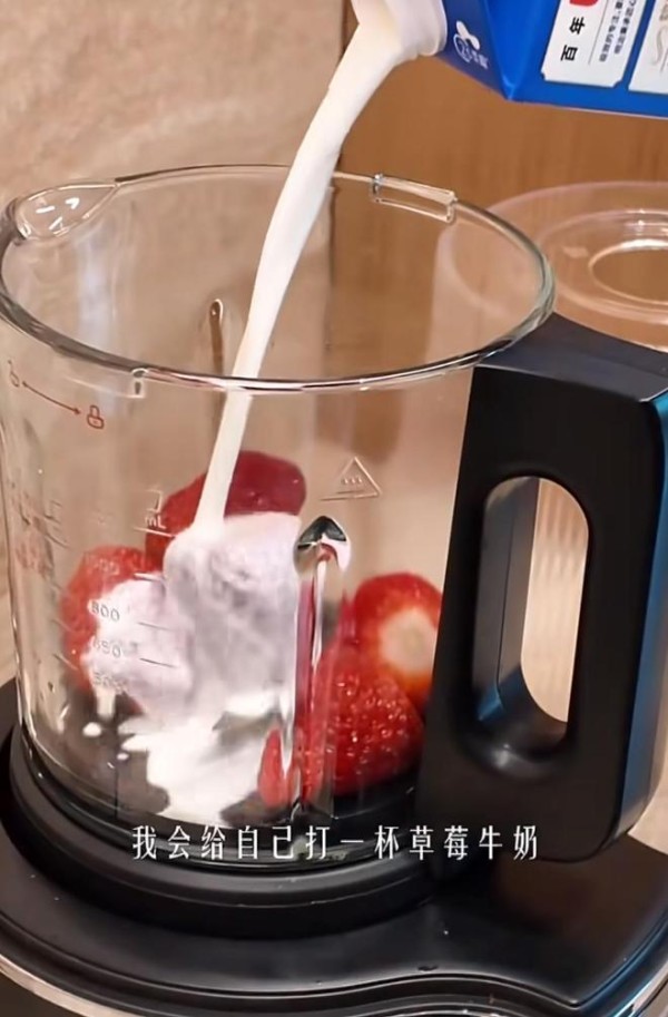 一大早起来,马筱梅第一件事便是洗漱,结束后就为自己打一杯新鲜的草莓牛奶,不摄入太多食物,但营养均衡。