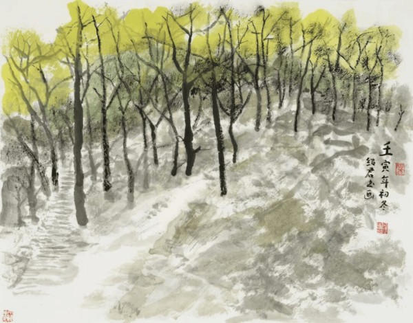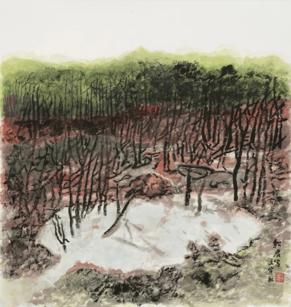 郎绍君 《林中泉影》 纸本设色 45cm×47cm