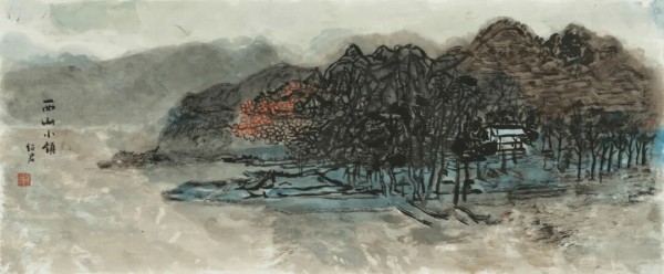 郎绍君 《西山小镇》 纸本设色 31cm×73cm